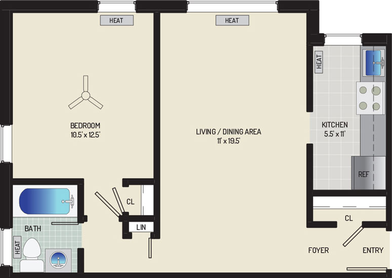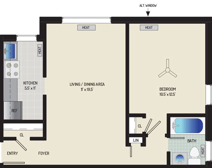 2 Bedrooms, 1 Bath